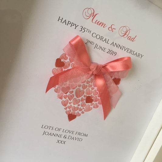 Coral Wedding Anniversary Gift Frame, Personalised 35th Anniversary Gift
