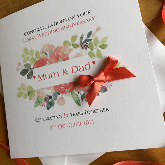 Personalised Coral 35th Wedding Anniversary Card, Floral Frame