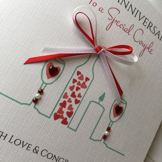 Wedding Anniversary Card - Personalised - Heart Wine Glasses