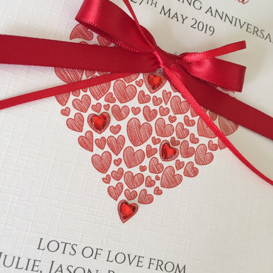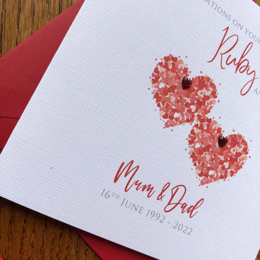 Ruby Wedding Anniversary Card, Personalised - Two Heart of Hearts