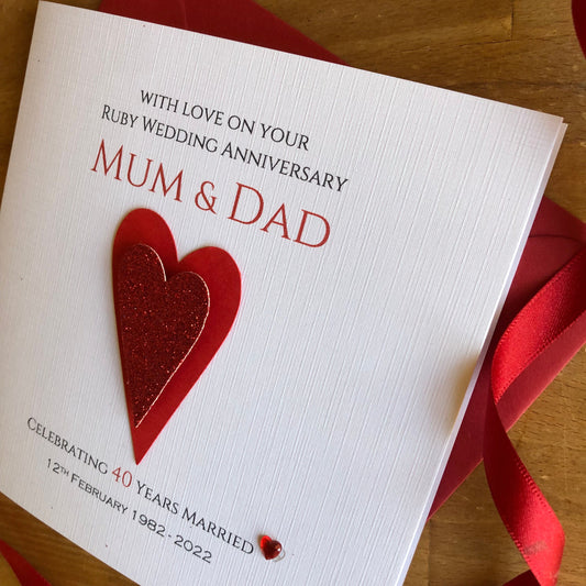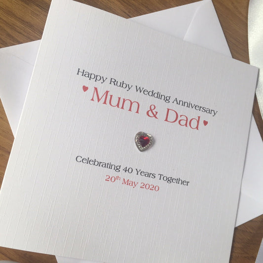 Ruby Wedding Anniversary Card - Crystal Heart - 40 Years Personalised Anniversary