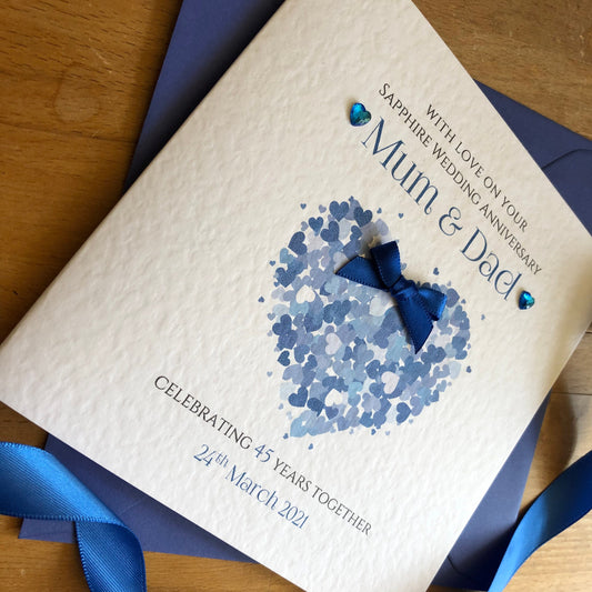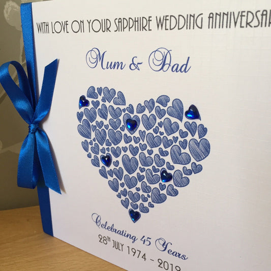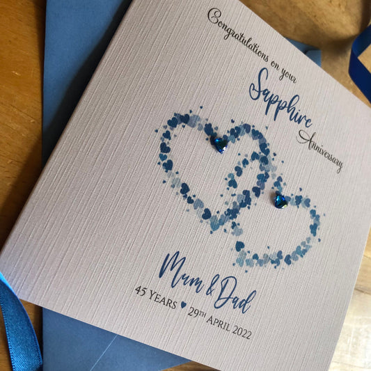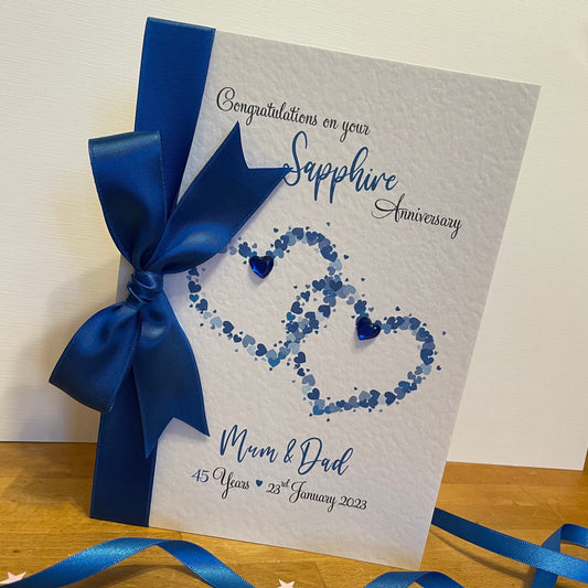 Sapphire Wedding Anniversary Card, Heart Hearts - 45 or 65 Years Personalised Card