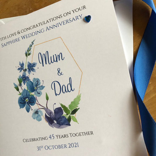 Sapphire 45th / 65th Wedding Anniversary Card, 45th Anniversary, Sapphire 65th Wedding