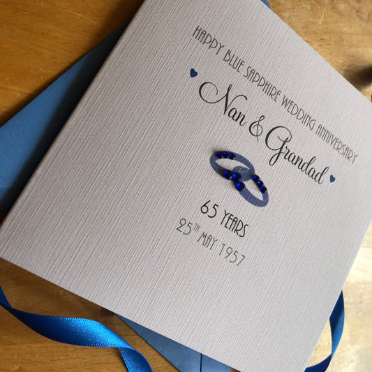Sapphire 45th 65th Wedding Anniversary Card - Crystal Heart - Personalised Card