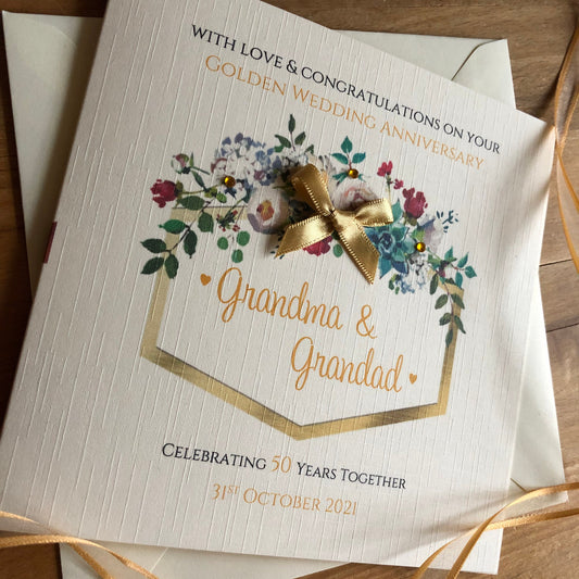 Personalised Golden Wedding Anniversary Card, 50th Anniversary - Floral Frame