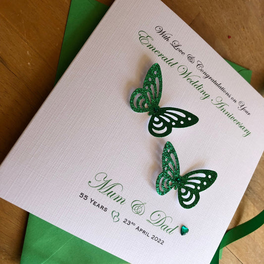 Personalised Emerald 55th Wedding Anniversary Card, Glitter Butterflies