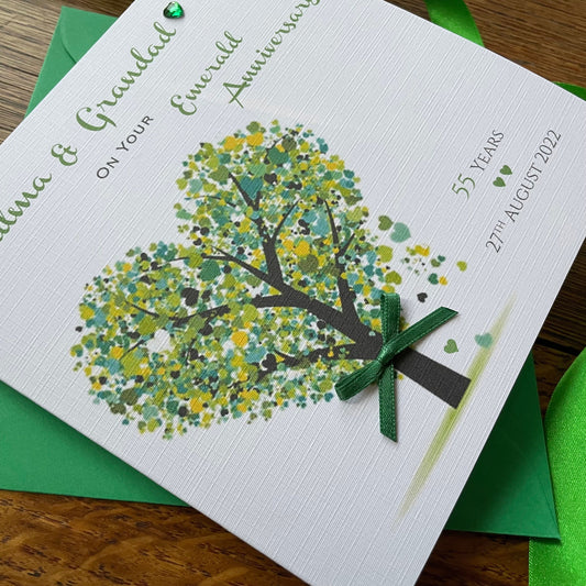 Emerald 55th Wedding Anniversary Card, Emerald Tree Personalised Card