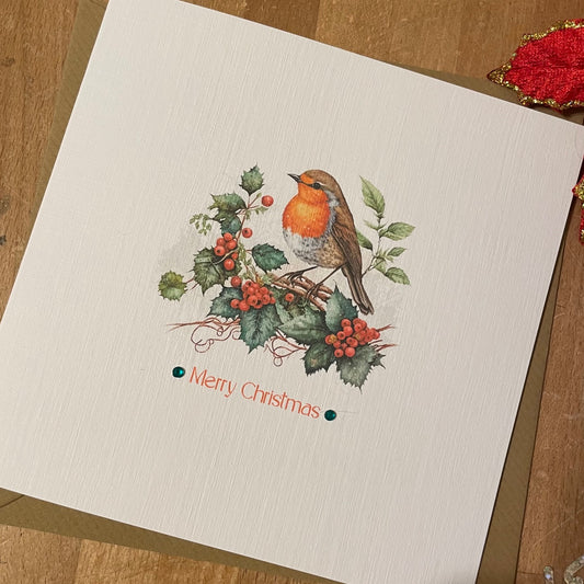 Luxury Christmas Cards - Festive Robin with Crystals and Bow- Pack/6 - 3 Designs