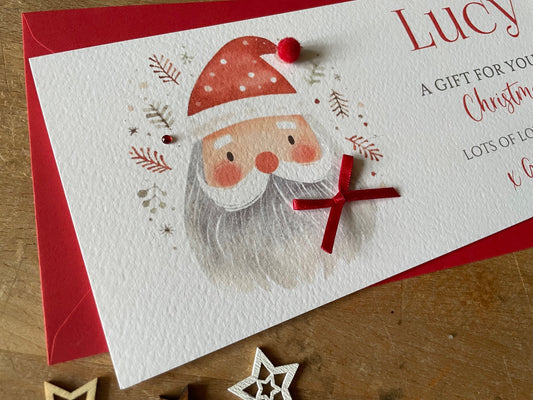 Personalised Father Christmas Money / Gift / Voucher Wallet - Money Wallet with Crystals and Bow