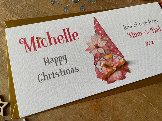 Personalised Christmas Gnome, Elf, Gonk - Pink - Money / Gift / Voucher Wallet