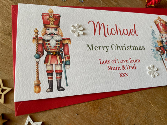 Personalised Christmas Nutcracker Money / Gift / Voucher Wallet - with Crystals and Bow