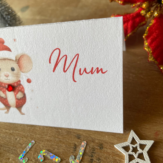 Personalised Christmas Table Name Cards - Christmas Mouse - Table Setting Cards