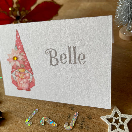Personalised Christmas Table Name Cards - Pink Miss / Mrs Christmas Gonk, Gnome - Table Setting Place Cards