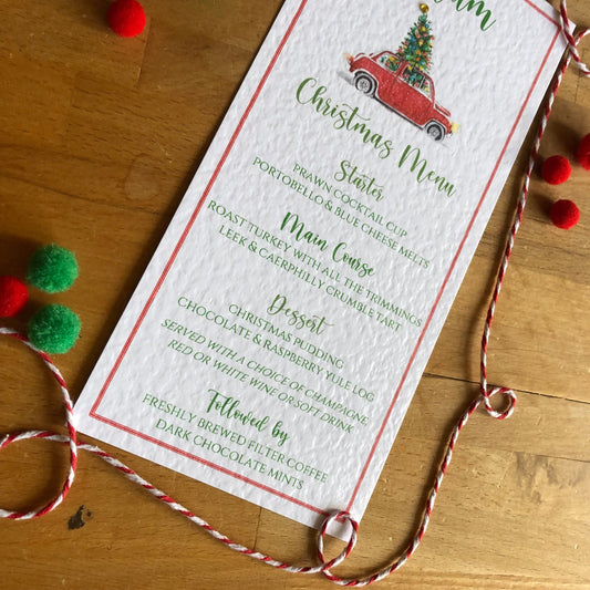 Personalised Christmas Table Menu Cards - Christmas Tree Car