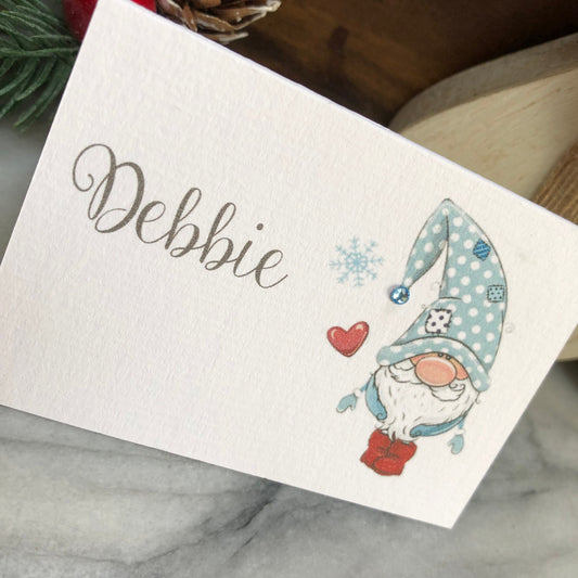 Personalised Christmas Table Name Cards - Christmas Elf - Blue