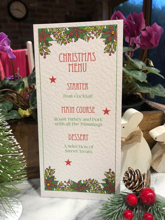 Personalised Christmas Table Menu Cards - Christmas Poinsettia