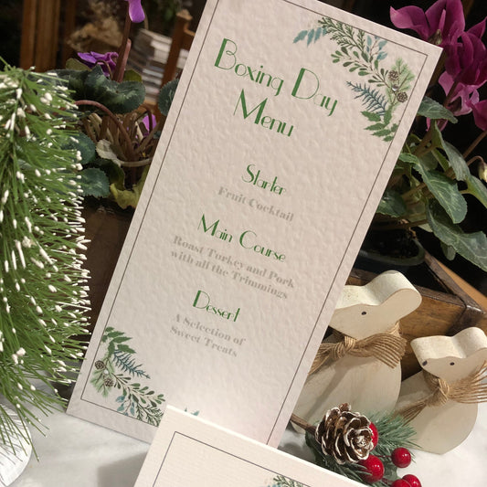Personalised Christmas Table Menu Cards - Christmas Foliage