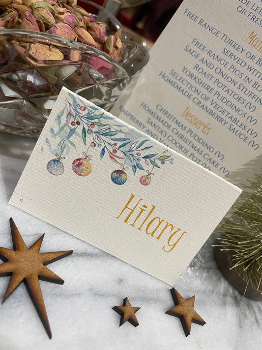 Personalised Christmas Table Name Cards - Christmas Baubles