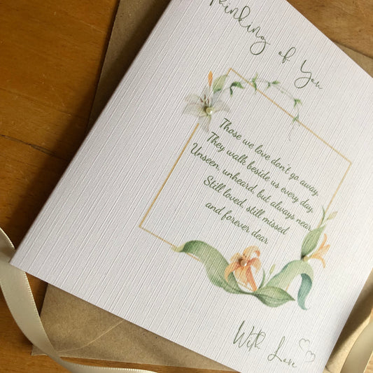 Sympathy Card, Lily Frame Condolence, Thinking of You, Sorry for your Loss Bereavement