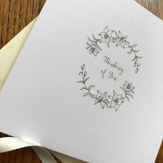 Thinking of You - Lily Wreath with Pearls - Sympathy, Illness, Bereavement