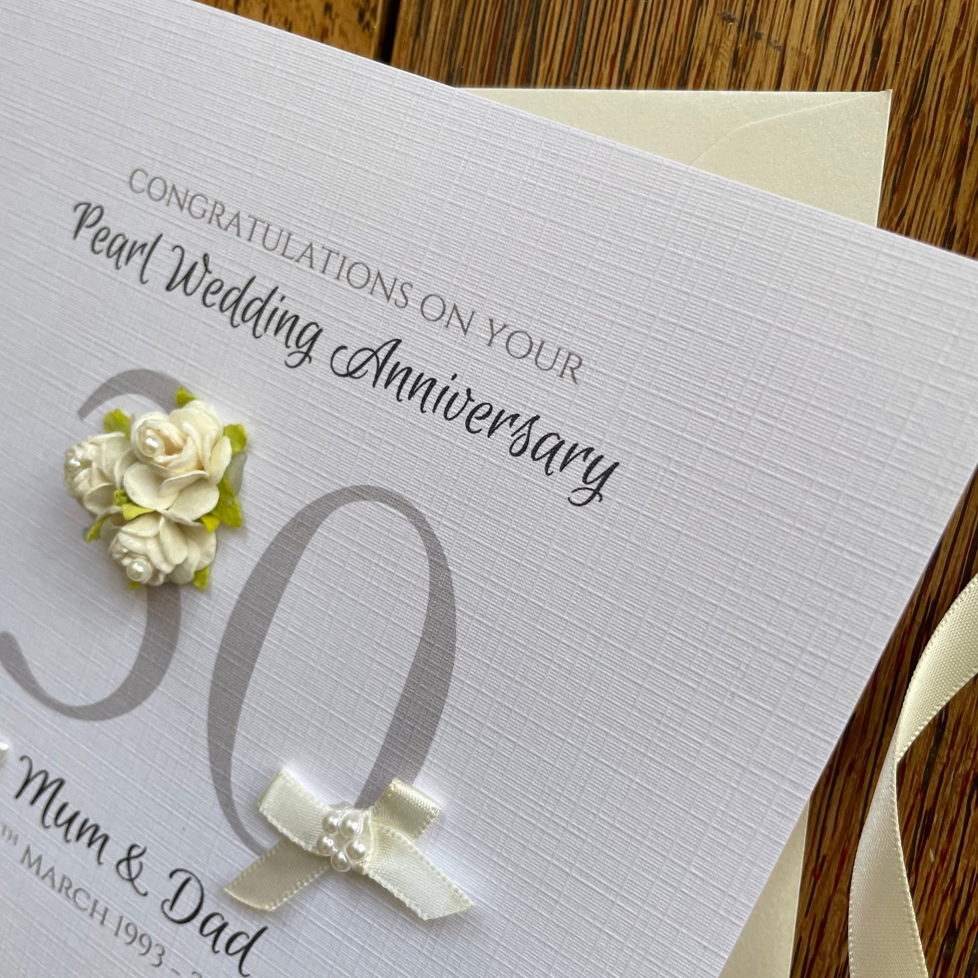 Pearl 30th Wedding Anniversary Card, Rose Cluster Personalised Card