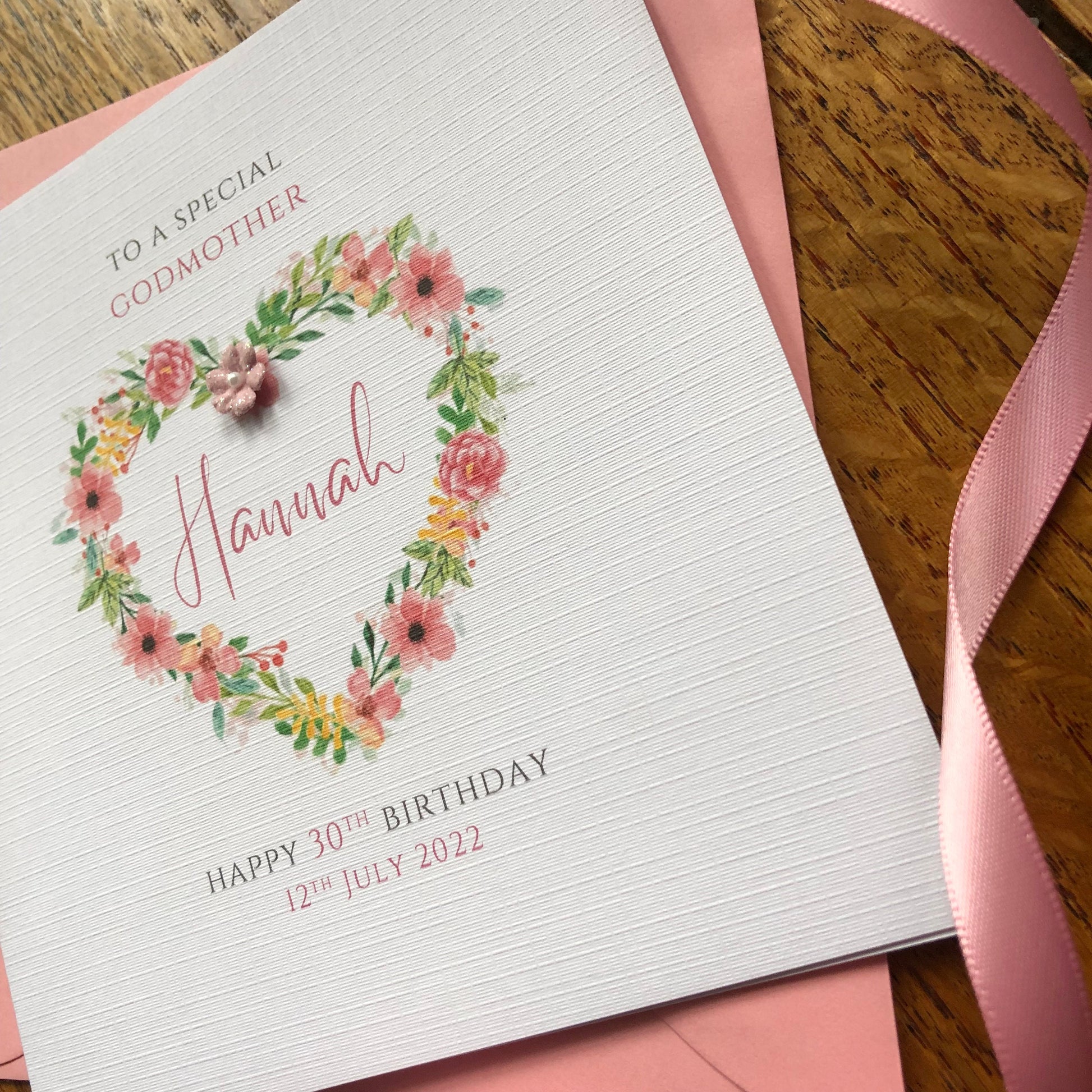 Beautiful delicate rose gold floral heart illustration embellished with a pretty blush pink paper flower with pearl centre printed on a 300gsm textured classic opening card with personalised wording of your choice